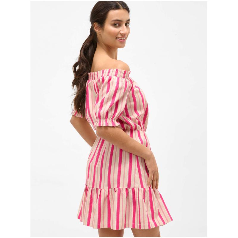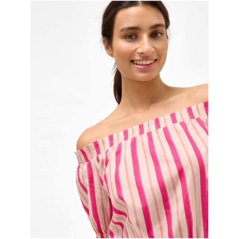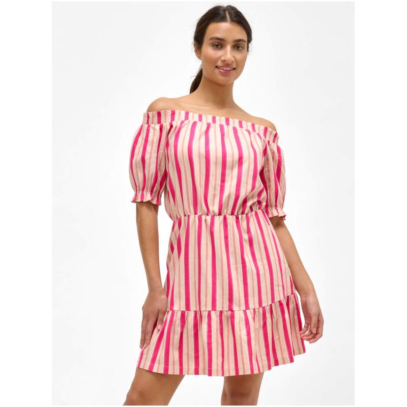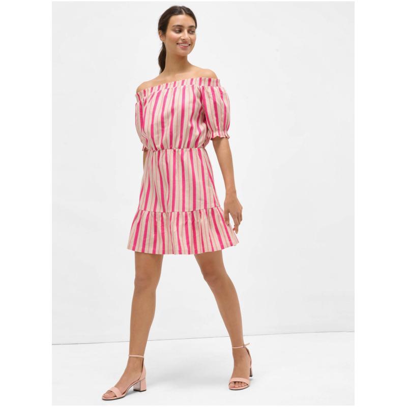 Perex: V ORSAY věříme, že krása nemá limity. Proto u produktů s označením CURVES rozšiřujeme nabídku o velikosti 44, 46 a XXL.Barva: růžováStřih: áčkovýDélka: krátkáDélka rukávu: krátkýVýstřih: odhalená ramenaVzor: pruhovanýMateriál: 55 % len, 45 % viskózaKód produktu: 471661-98