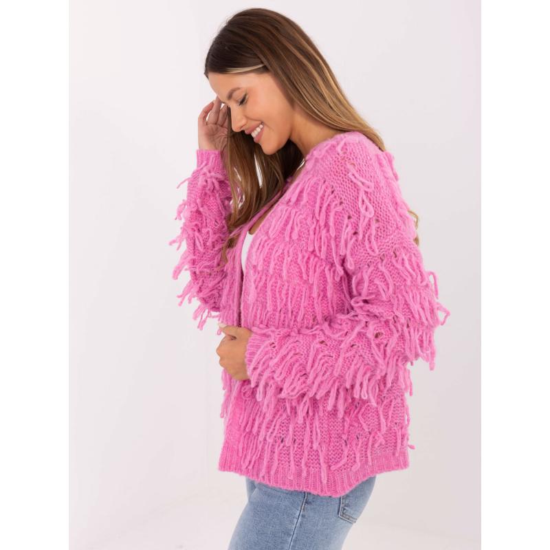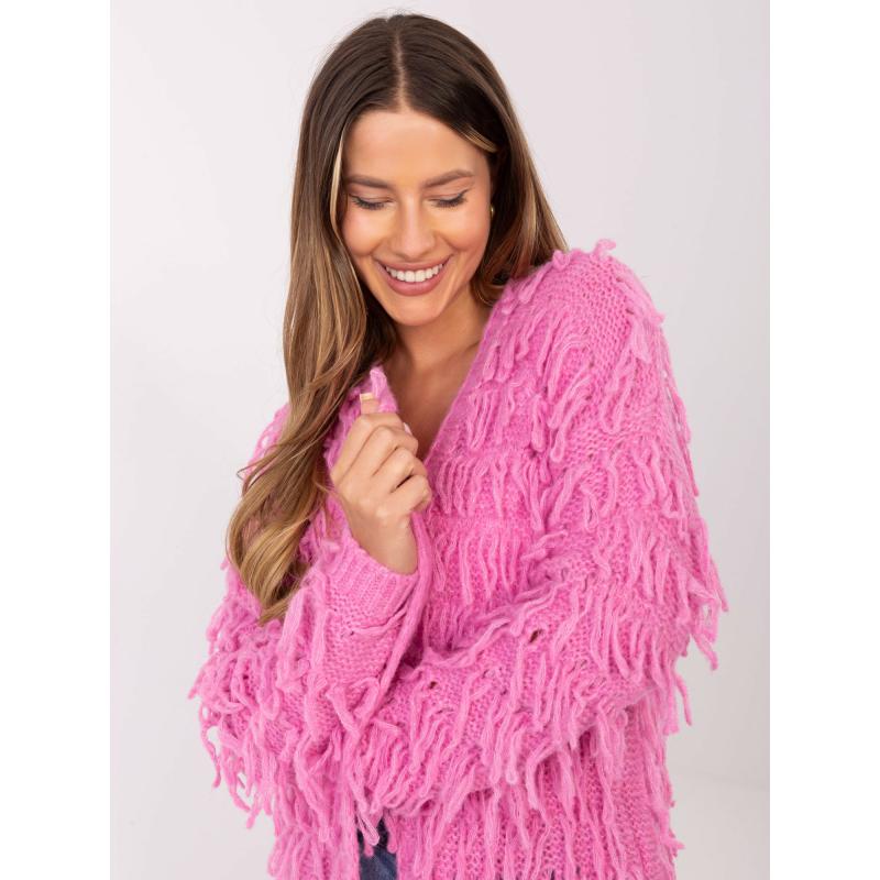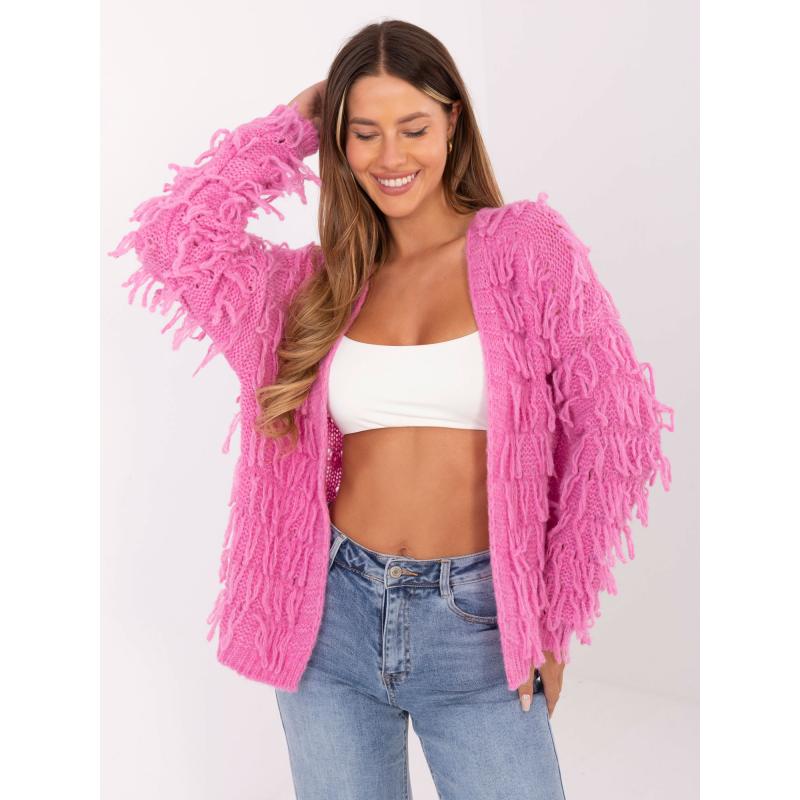 Růžový dámský kardigan s třásněmi RUE PARIS