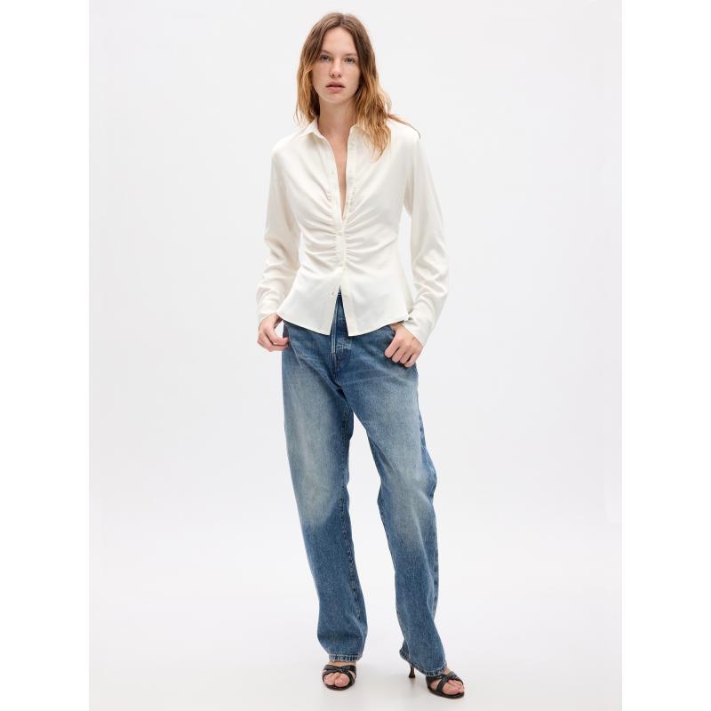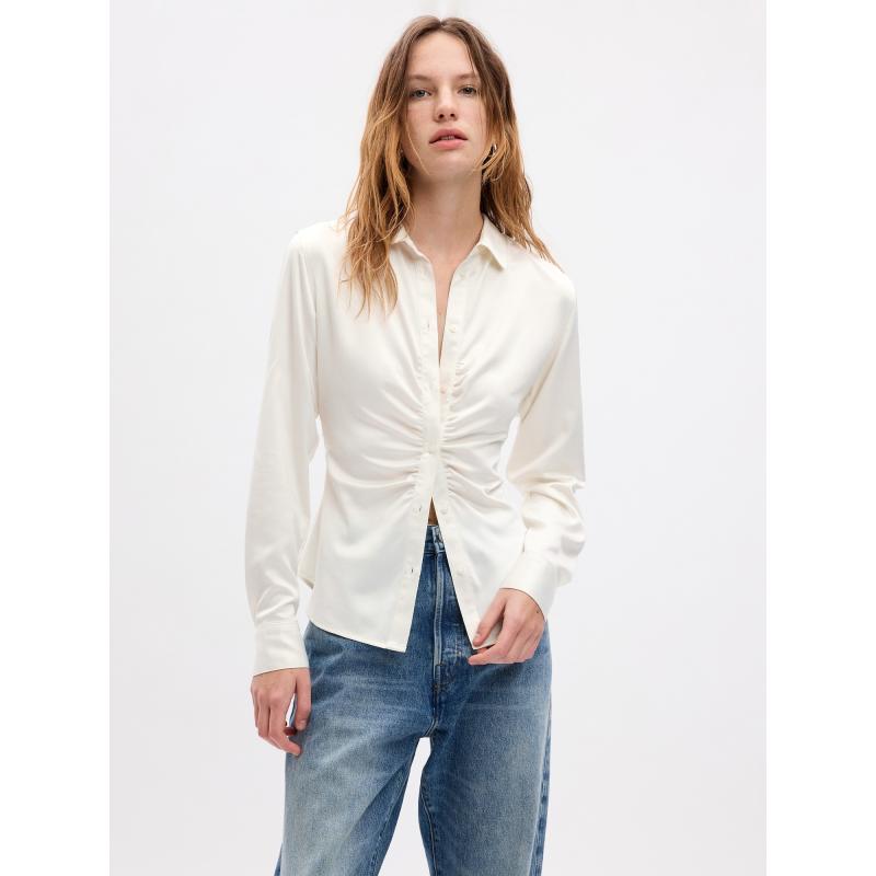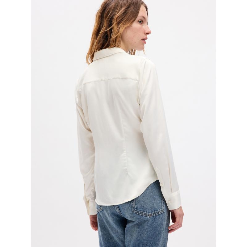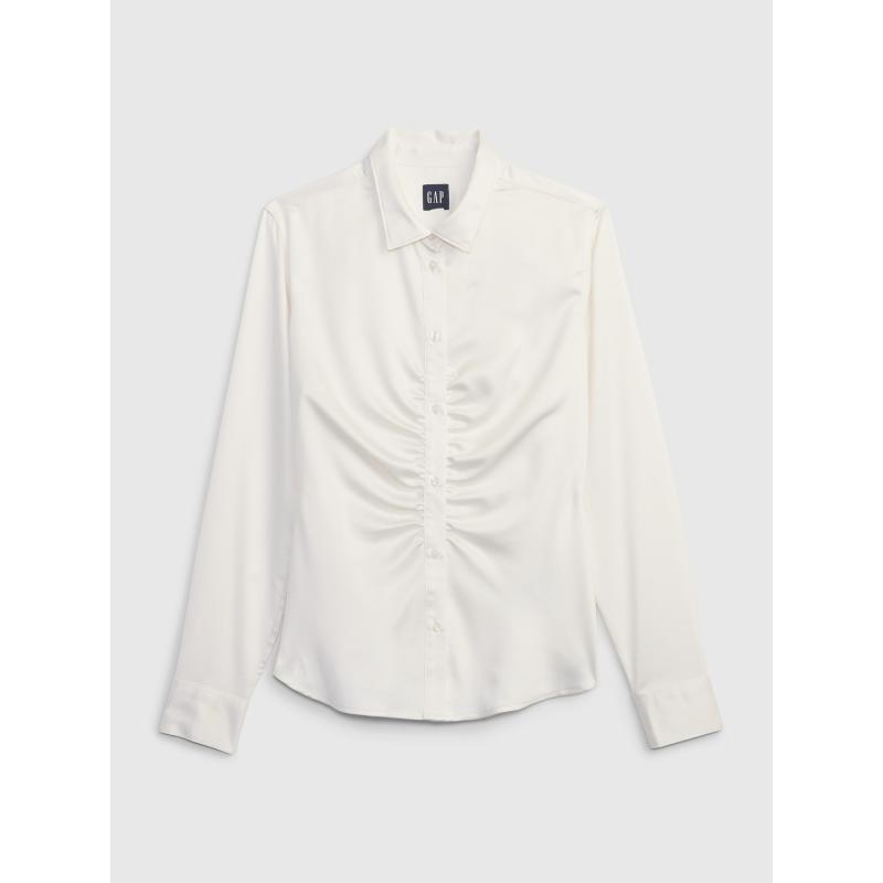 Dámská saténová košile.Límeček a zapínání na knoflíčky.Dlouhé rukávy s manžetou.Ozdobně nabíraná.Jednobarevná. 100 % polyester