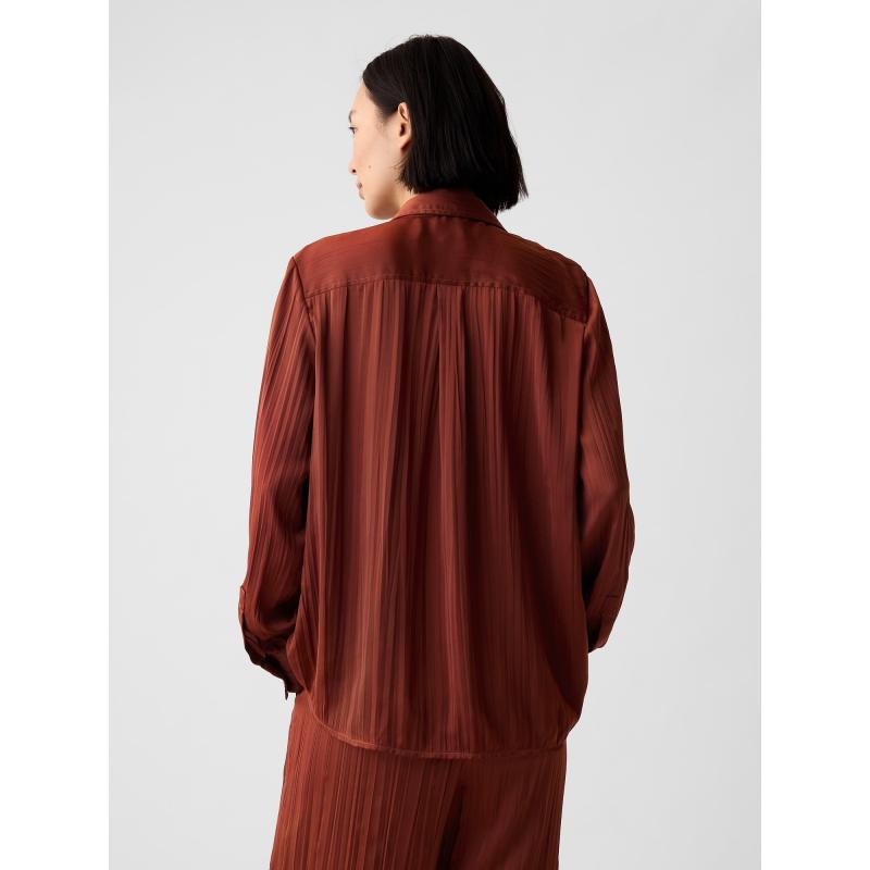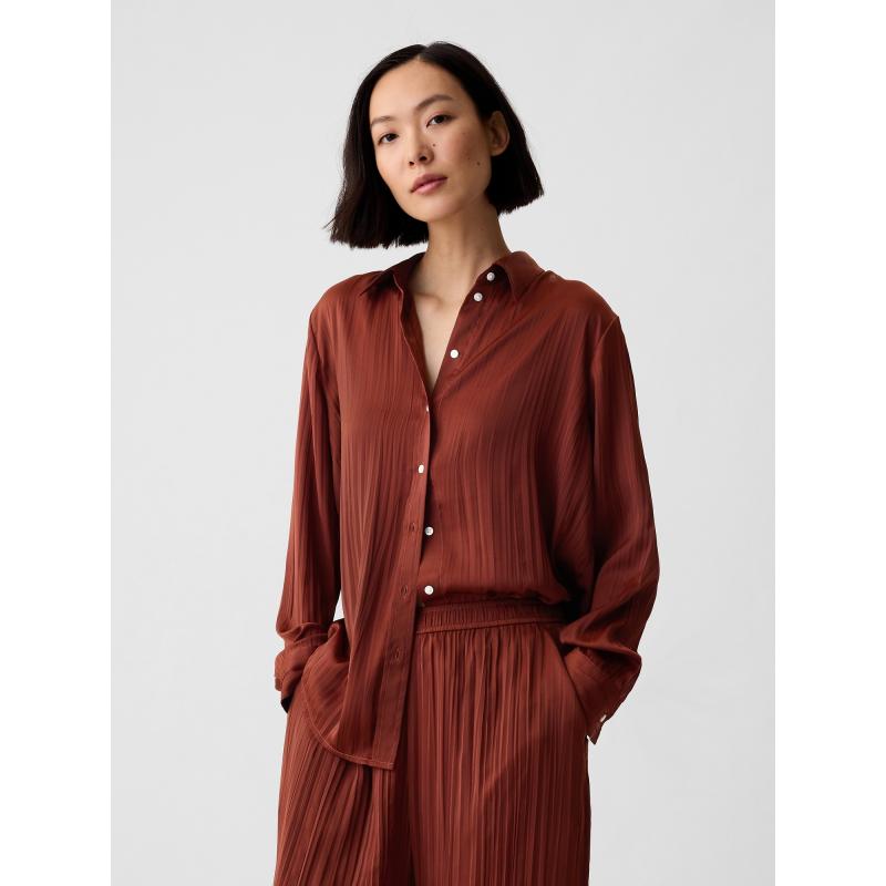Dámská košile Boyfriend.Mačkaný satén.Límeček a zapínání na knoflíčky.Dlouhé rukávy s manžetou.Velikost je větší, doporučujeme zakoupit o číslo menší. 100 % polyester