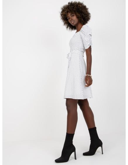 Dámské šaty s puntíky a vázáním mini TESSA bílé