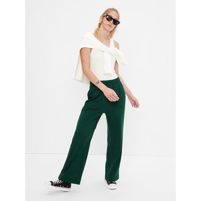 Dámské tepláky z měkkého úpletu.Pružný vysoký pas.Šikmé boční kapsy.Široké a volné nohavice. Krátké rozparky po stranách.Příjemný a pružný materiál. 73 % polyester, 22 % modal, 5 % elastan