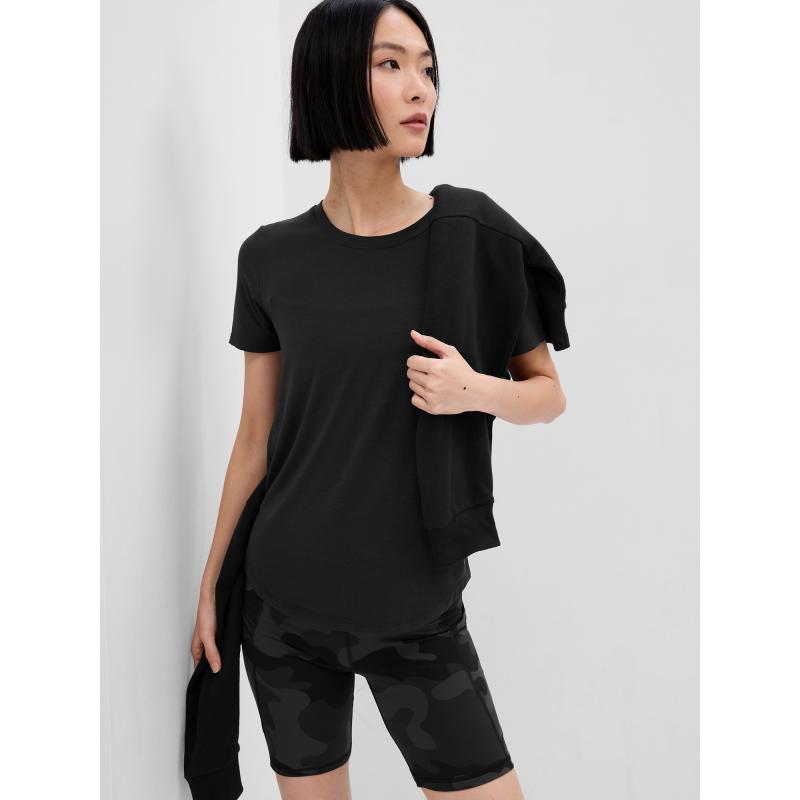 Měkké strečové dámské sportovní tričko.Kulatý výstřih.Krátké rukávy.Naše lehká a prodyšná tkanina s technologií odvodu vlhkosti, která odvádí pot od těla a udržuje vás v suchu a pohodlí.Rovná silueta s volným střihem.Délka po boky.Modelky nosící velikost Gap S jsou 172 cm – 180 cm vysoké s pasem 60 cm – 66 cm a boky 84 cm – 97 cm.Modelky nosící velikost Gap XL jsou 172 cm – 180 cm vysoké s pasem 86 cm – 91 cm a boky 114 cm – 127 cm.Více z kolekce GapFit >. 74 % polyester, 18 % lyocell, 8 % elastan