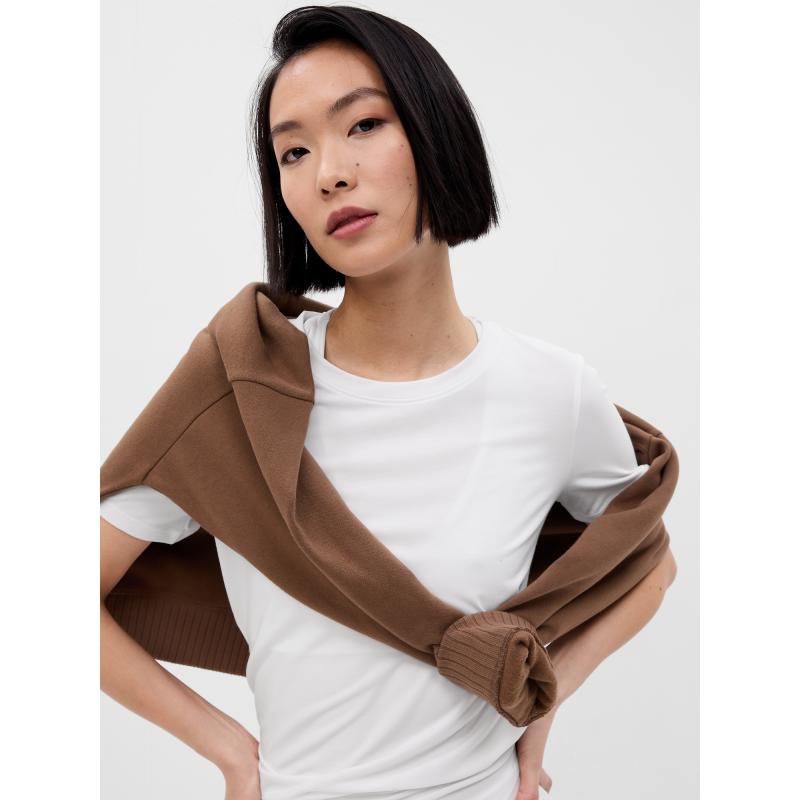 Měkké strečové dámské sportovní tričko.Kulatý výstřih.Krátké rukávy.Naše lehká a prodyšná tkanina s technologií odvodu vlhkosti, která odvádí pot od těla a udržuje vás v suchu a pohodlí.Rovná silueta s volným střihem.Délka po boky.Modelky nosící velikost Gap S jsou 172 cm – 180 cm vysoké s pasem 60 cm – 66 cm a boky 84 cm – 97 cm.Modelky nosící velikost Gap XL jsou 172 cm – 180 cm vysoké s pasem 86 cm – 91 cm a boky 114 cm – 127 cm.Více z kolekce GapFit >. 74 % polyester, 18 % lyocell, 8 % elastan