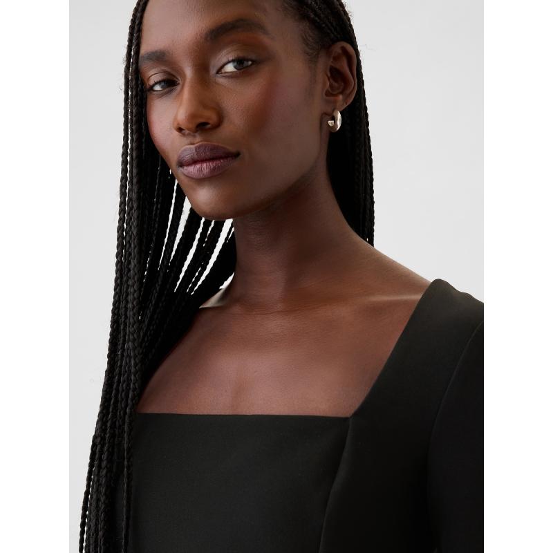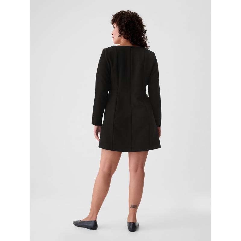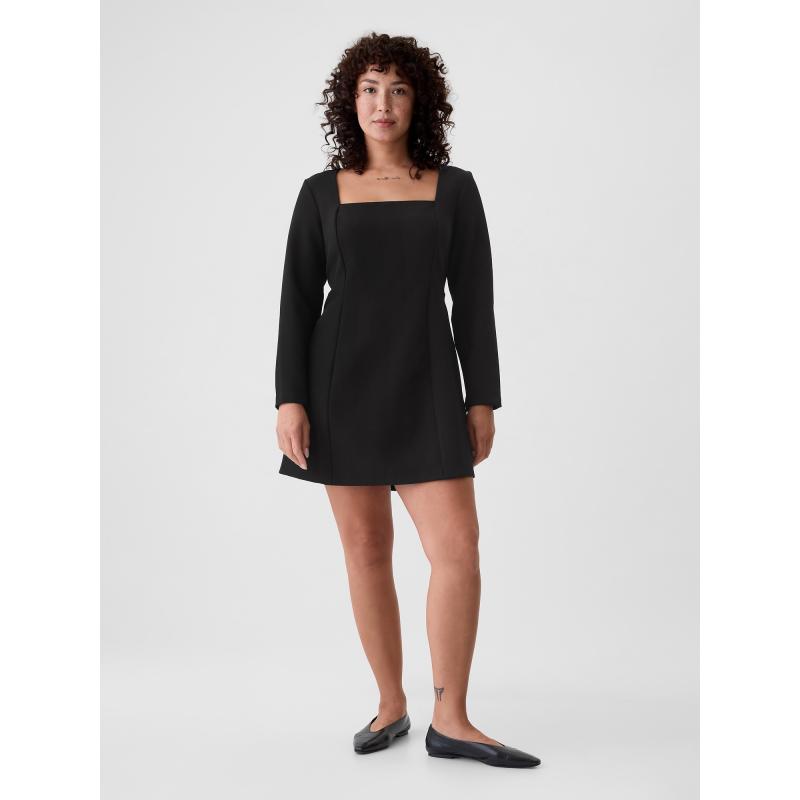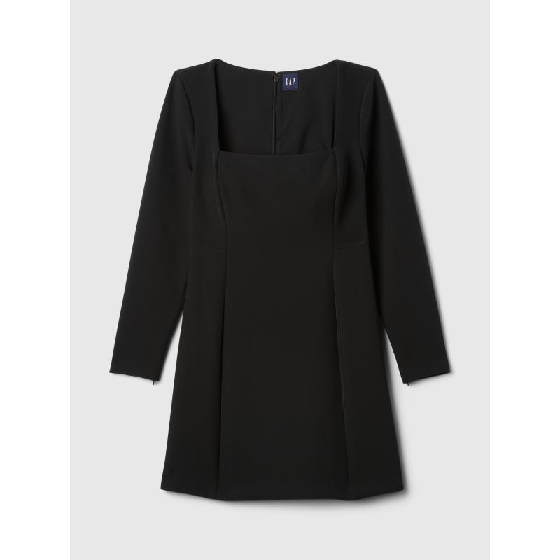 Elegantní mini šaty.Čtvercový výstřih a dlouhé rukávy.Moderní a sofistikovaný styl.Přední švy dodávají šatům strukturu.Zdůrazňující siluetu.Zadní zip.Přiléhavý střih, který obepíná tělo a směrem k dolnímu lemu se mírně rozšiřuje.Délka nad kolena.Modelky s velikostí S: výška 172–180 cm, obvod pasu 60–66 cm a boky 84–97 cm.Modelky s velikostí XL výška 172–180 cm, mají obvod pasu 86–91 cm a boky 114–127 cm. 95 % polyester, 5 % elastan