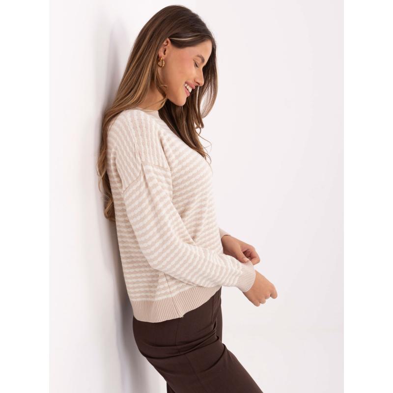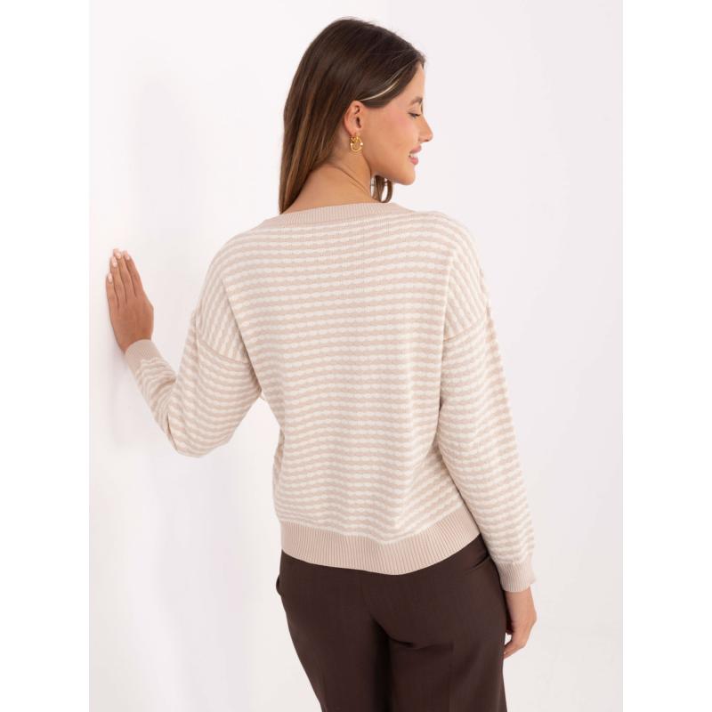 Klasszikus pulóver világos bézs színben, csíkokkal