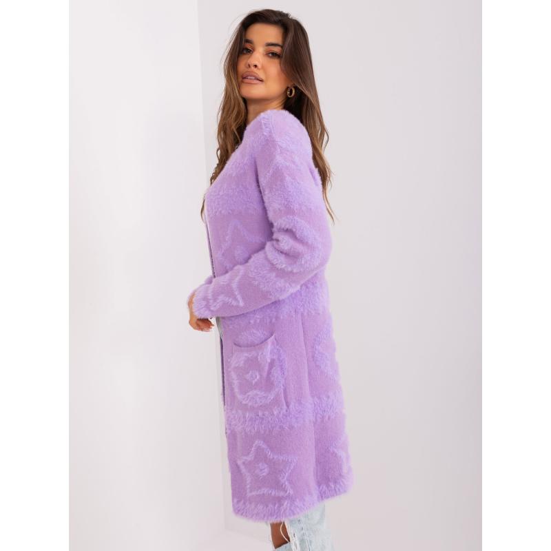 Dámský svetr s kostkovaným vzorem a dlouhými rukávy ALIVA fialový