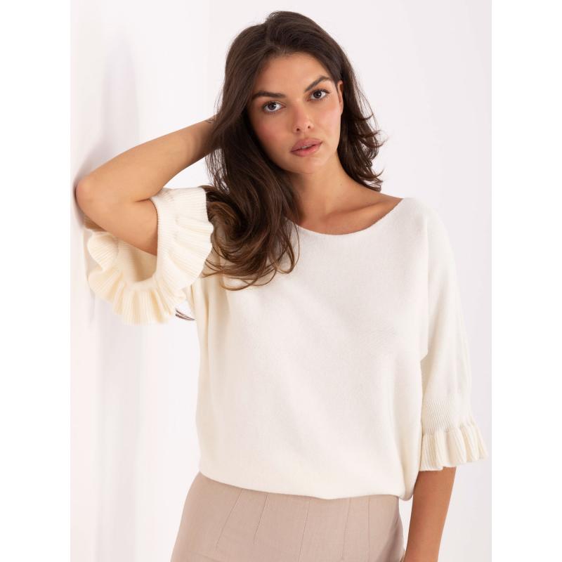 Dámský svetr s 3/4 rukávy ležérní oversize ecru