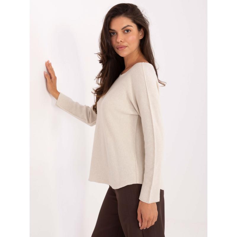 Světle béžový klasický svetr s dlouhými rukávy