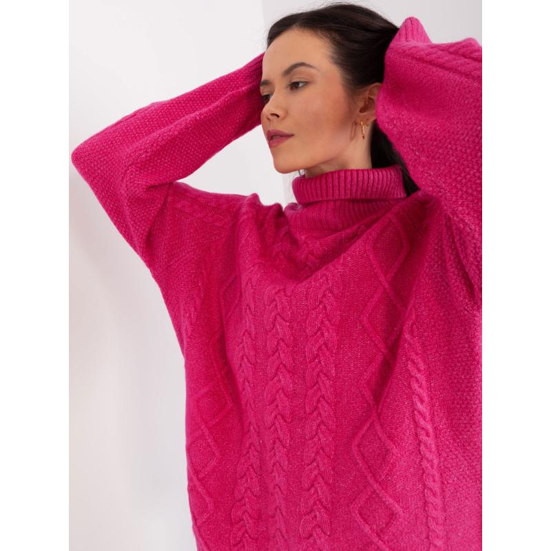 Fuchsiový pruhovaný asymetrický svetr se stojáčkem