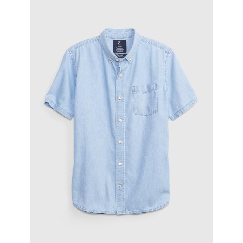 Chlapecká džínová košile.Speciální kolekce pro teenagery.S krátkým rukávem a zapínáním na knoflíky.Klasický límeček a na hrudi našitá malá kapička.Program Washwell.100% bavlna. 100 % bavlna