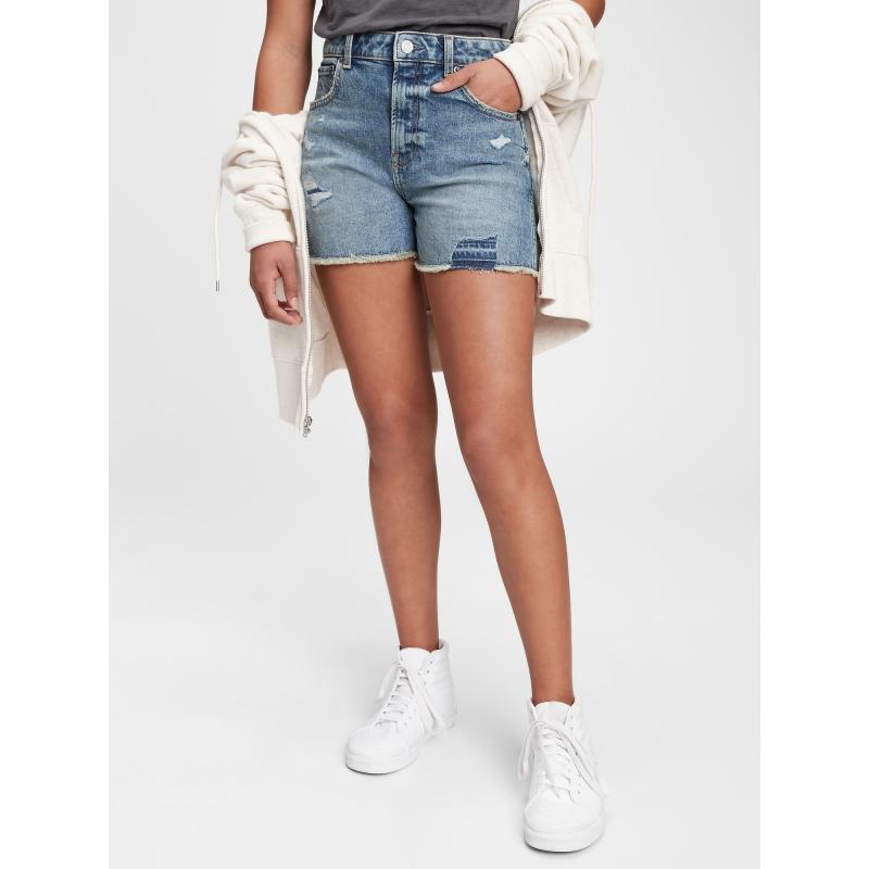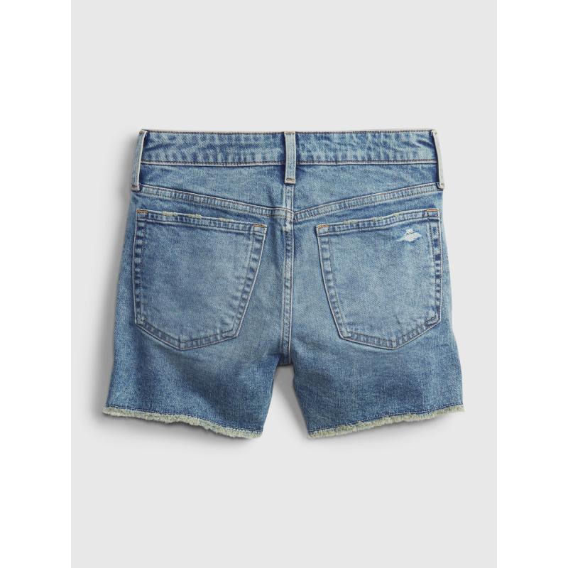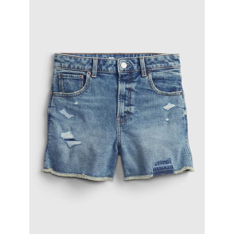 Dívčí džínové kraťasy v obnošeném stylu.Pružný materiál a vyšší pas pro pohodlí.Přední a zadní kapsy.Zapínání na zip a knoflík.Poutka na pásek.Obsahují 5 % recyklované bavlny. 94 % bavlna, 5 % recyklovaná bavlna, 1 % elastan