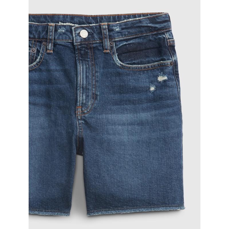 Dětské džínové kraťasy.Zapínání na zip a knoflík.Praktické kapsy a poutka na pásek.Lehce elastické pro větší pohodlí.V tmavě modrém provedení. 94 % bavlna, 5 % recyklovaná bavlna, 1 % elastan
