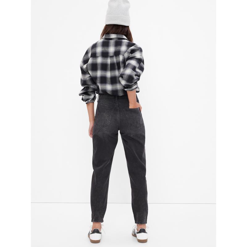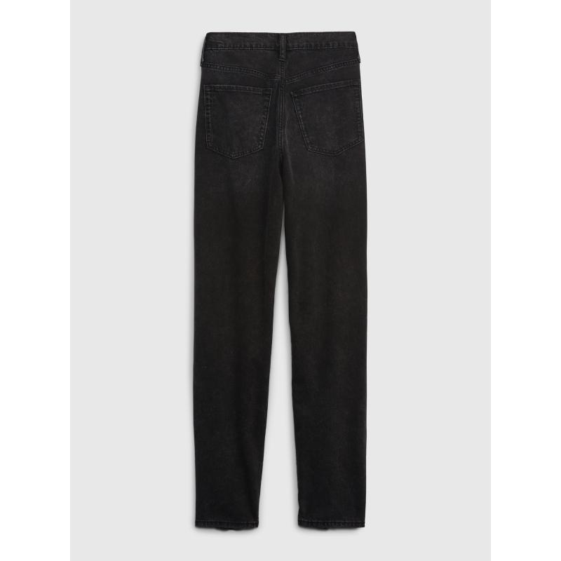 Dětské džíny v černé barvě.Vysoký pas se zapínáním na zip a knoflík.Pohodlný střih mom. Poutka na pásek a klasických 5 kapes.Bavlněné a lehce pružné.Záměrně obnošený vzhled.5% recyklovaná bavlna. 94 % bavlna, 5 % recyklovaná bavlna, 1 % elastan