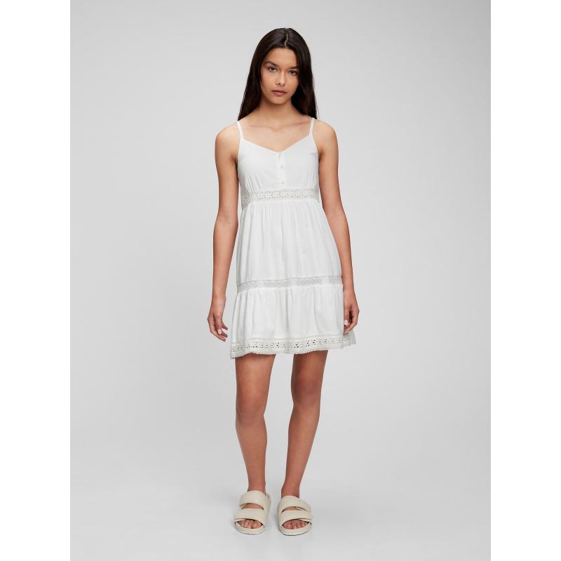 Lehké, romantické a pohodlné – tyto šaty jsou vyrobené z měkkého úpletu, který je příjemný na dotek a ideální pro celodenní nošení.Mají výstřih do V se zapínáním na knoflíčky a jemná špagetová ramínka, která dodávají lehkost a vzdušnost.Krajkové detaily v pase a na lemu přidávají šatům elegantní nádech, zatímco vrstvený střih sukně vytváří krásně splývavý efekt.Součást kolekce, která pomáhá šetřit vodu, snižovat množství odpadu a podporovat odpovědnější výrobu.Šaty mají lichotivý Fit & Flare střih, který krásně sedí a poskytuje volnost pohybu.Délka sahá nad kolena, což z nich dělá skvělou volbu pro teplé dny i speciální příležitosti. 64 % bavlna, 36 % Birla Livaeco