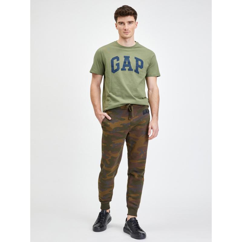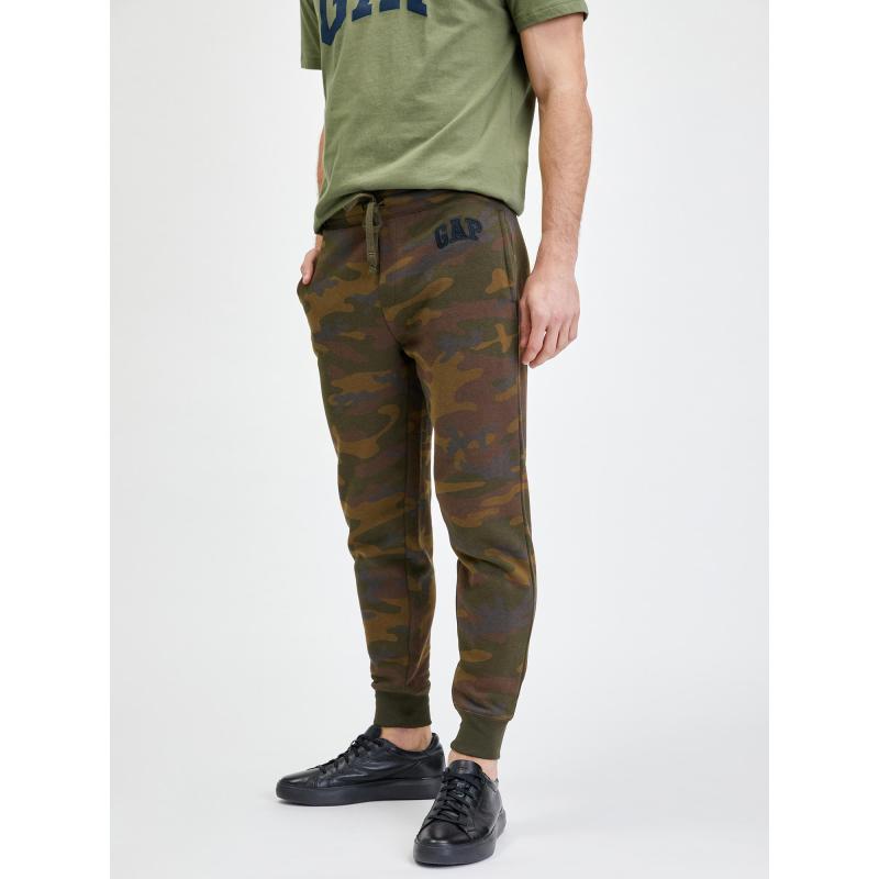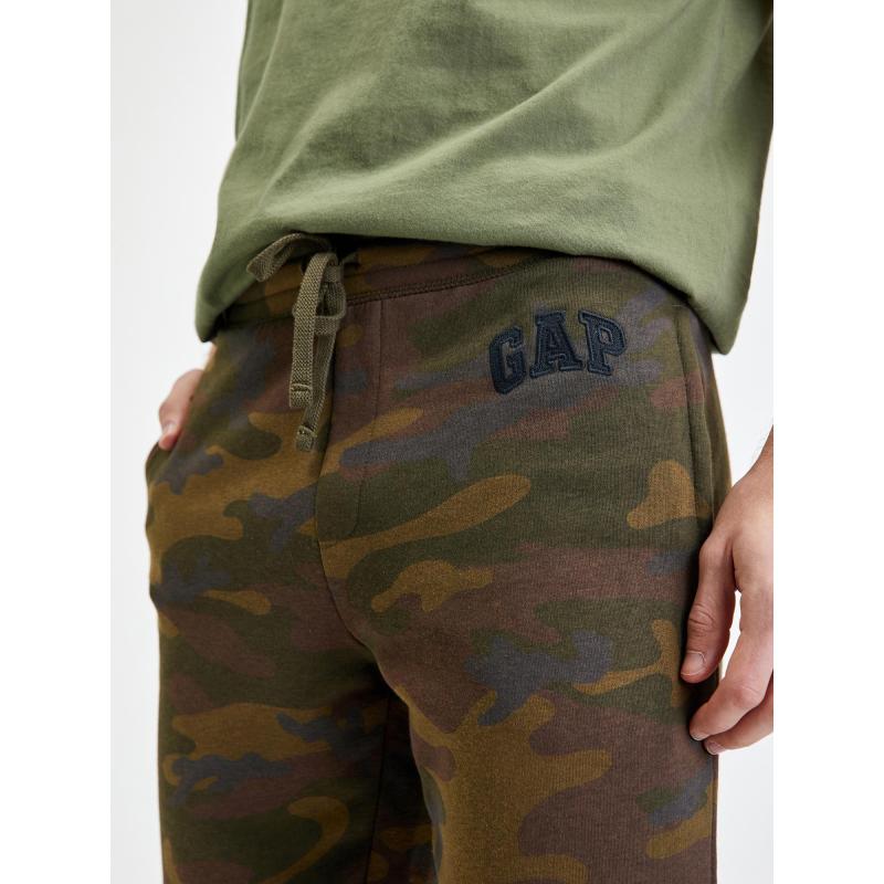 Pánské tepláky s logem Gap.Maskáčový vzor.Pružný pas se stahovací šňůrkou.Nohavice s náplety.11% recyklovaný polyester. 77 % bavlna, 23 % polyester