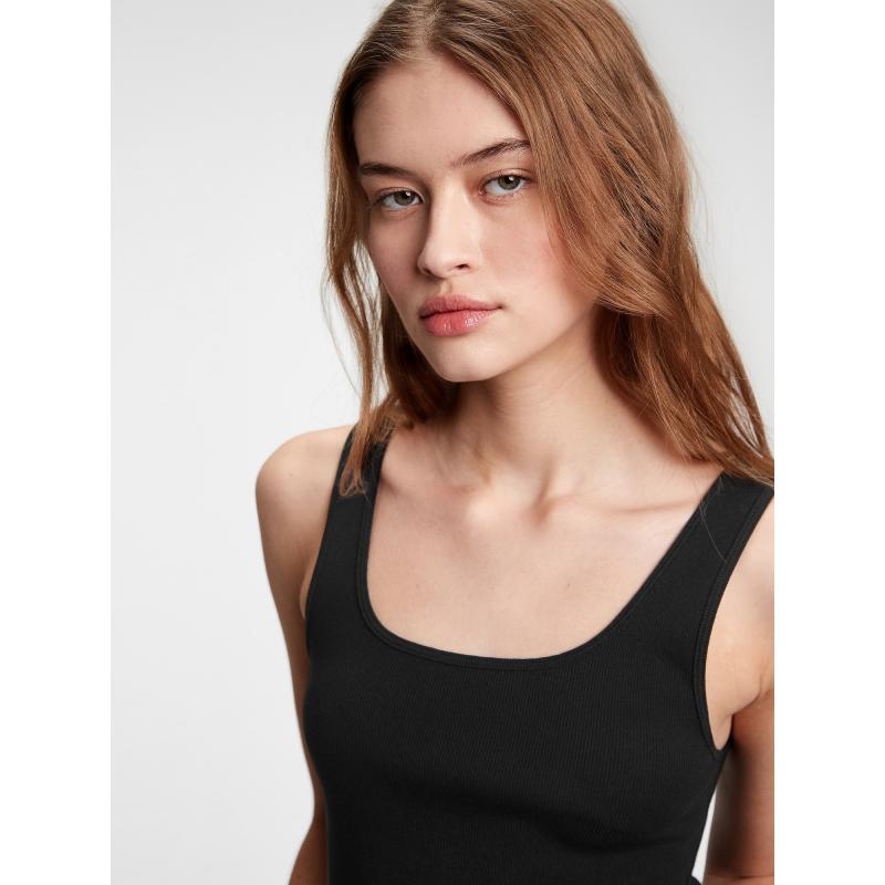 Kulatý výstřih. Měkký, pružný žebrovaný úplet.Ramínka ve stylu tílka.Rovná silueta s přiléhavým střihem.Délka sahá k bokům.Tento model byl vyroben ve výrobě zapojené do programu P.A.C.E. (Personal Advancement & Career Enhancement) společnosti Gap Inc.P.A.C.E. je vzdělávací program, který pomáhá ženám vyrábějícím naše oblečení získat dovednosti, znalosti, sebevědomí a odolnost potřebné k rozvoji v práci i v osobním životě. 58 % bavlna, 38 % polyester, 4 % elastan