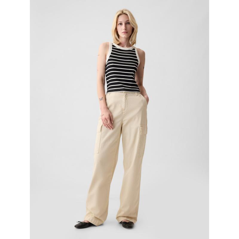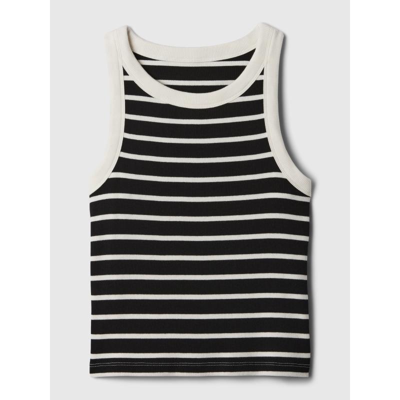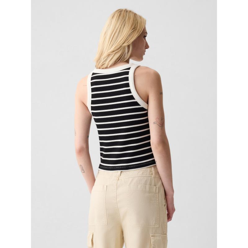 Dámský tílkový crop top.Kulatý výstřih.Široká vykrojená ramínka.Mírně vypasovaný střih.Velmi měkký žebrovaný úplet.Pruhovaný. 58 % bavlna, 38 % modal, 4 % elastan