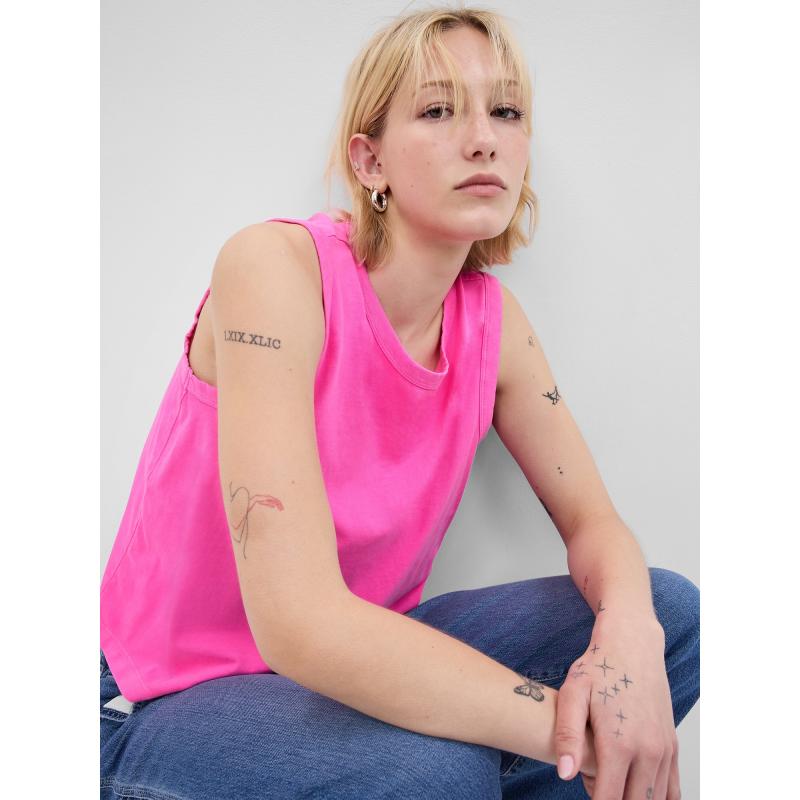 Dámský tílkový top.Kulatý výstřih a rovný střih.Široká ramínka.Měkký hladký úplet.Z organické bavlny.Modelka má na sobě velikost S. 100 % bavlna