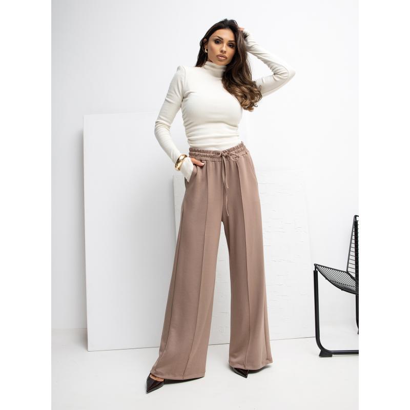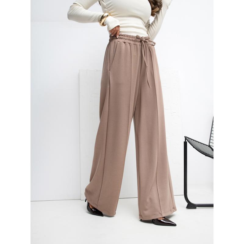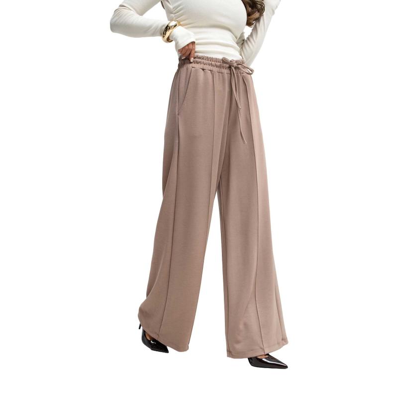 Tmavě béžové kalhoty palazzo s kapsami RUE PARIS