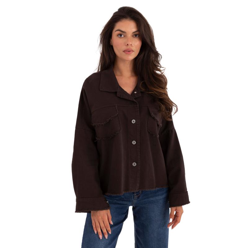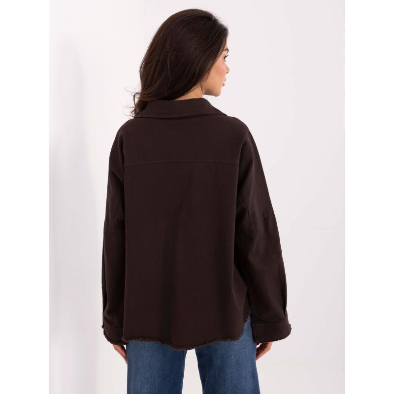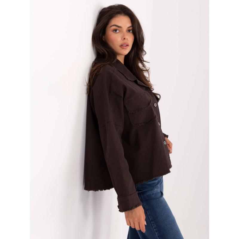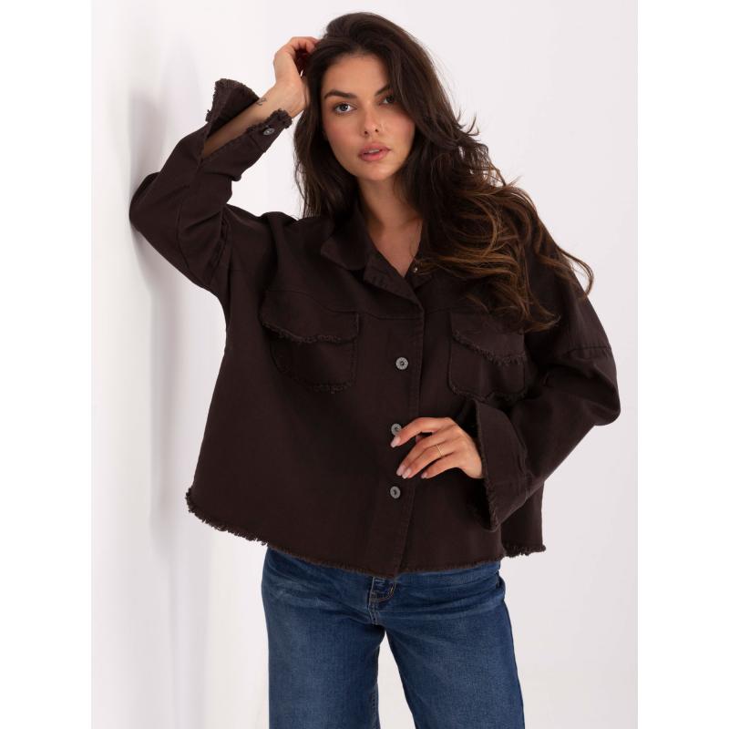 Tmavě hnědá džínová bunda s kapsami RUE PARIS