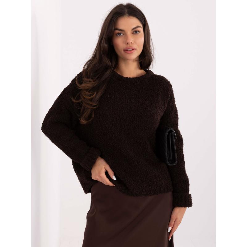 Tmavě hnědý bouclé svetr oversize střihu