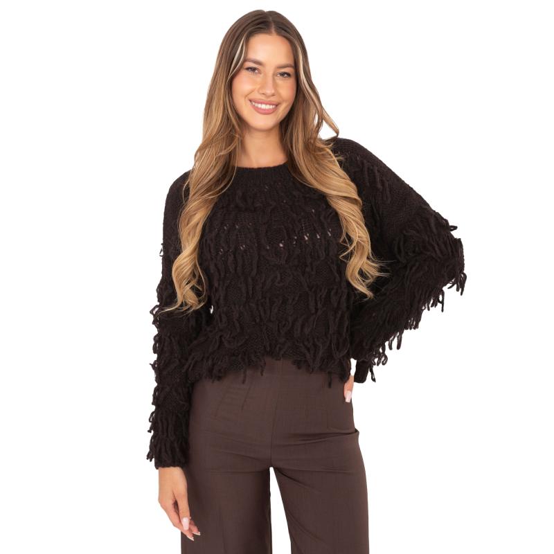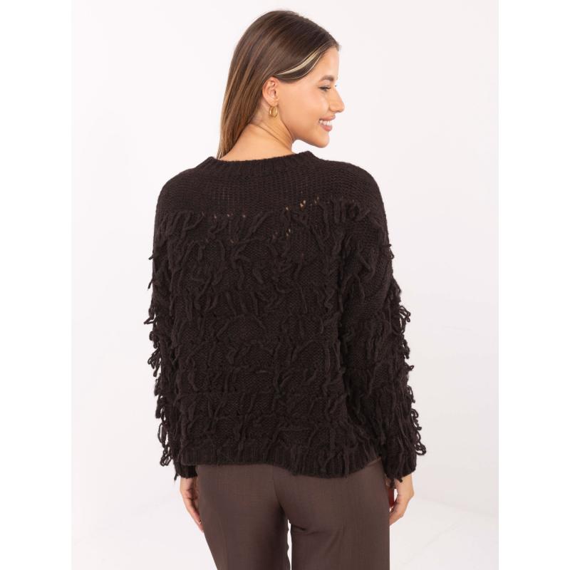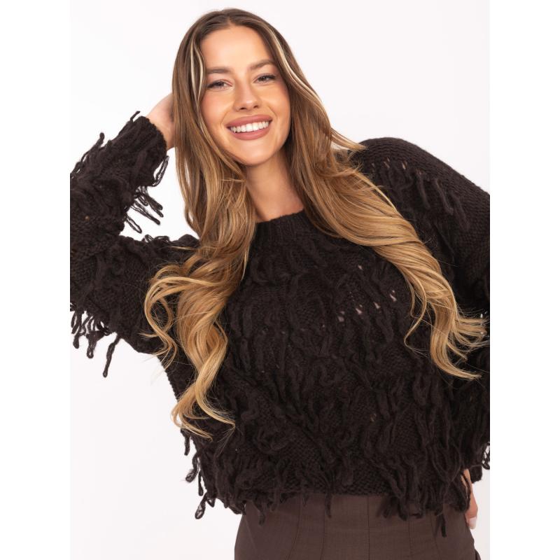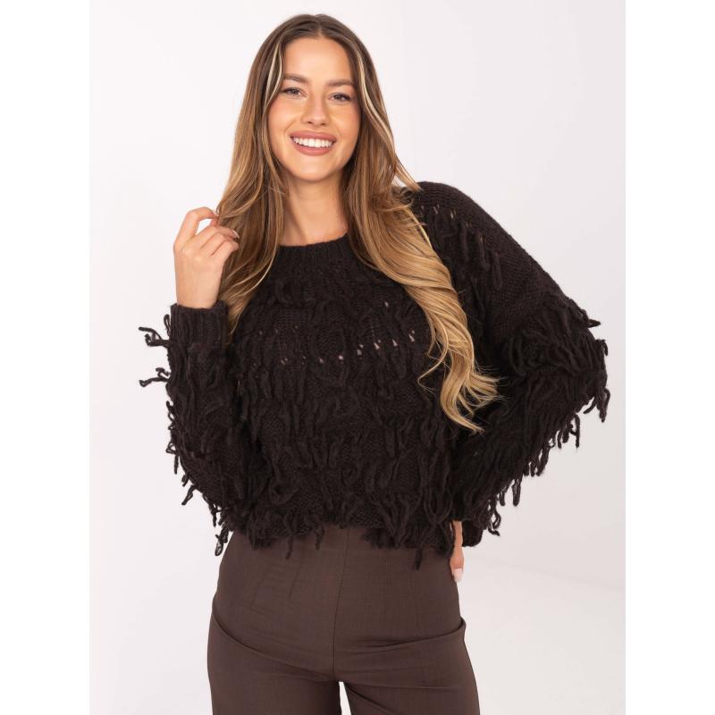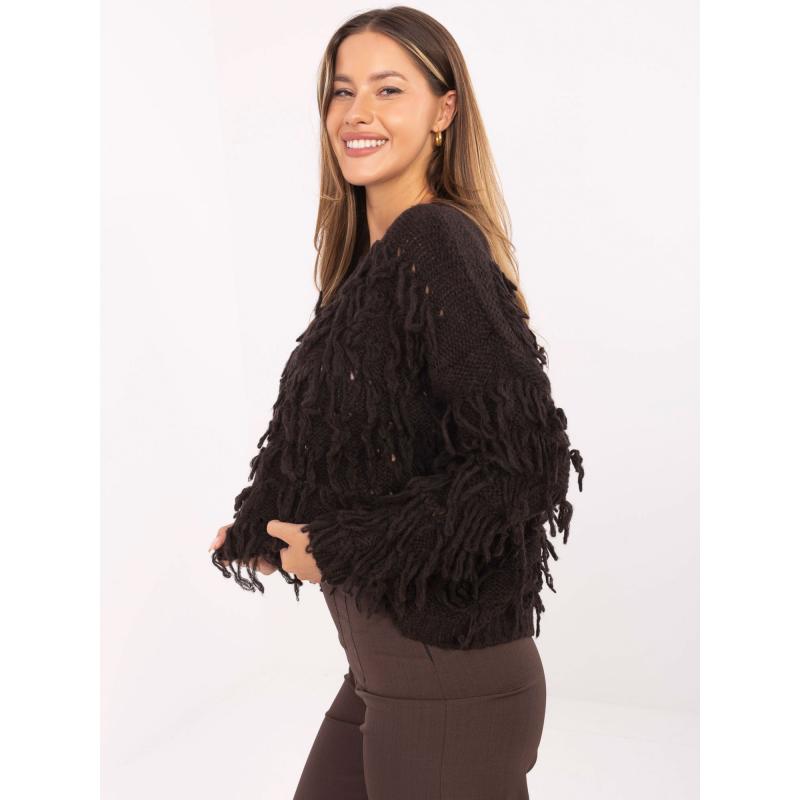 Tmavě hnědý oversize svetr s třásněmi RUE PARIS