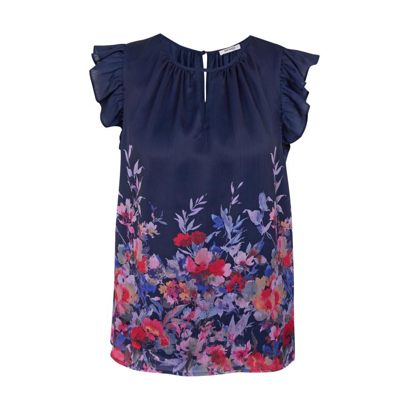 Barva: tmavě modráDélka rukávu: bez rukávuVýstřih: kulatýVzor: květinovýMateriál: 100 % polyesterKód produktu: 651134575000