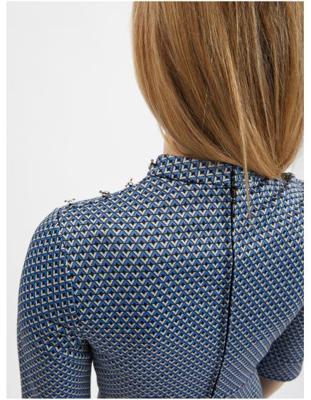 Barva: tmavě modráStřih: áčkovýDélka: ke kolenůmDélka rukávu: dlouhýVýstřih: véčkovýVzor: geometrickýMateriál: 97 % polyester, 3 % metalická vláknaKód produktu: 471728575000