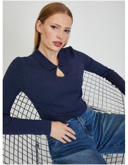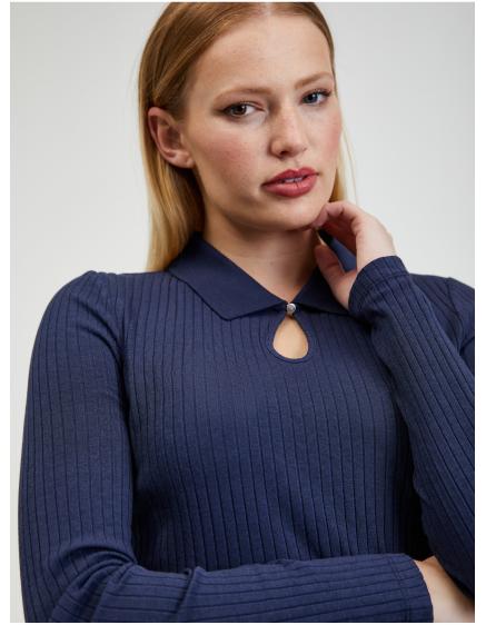 Tmavě modré dámské vzorované tričko