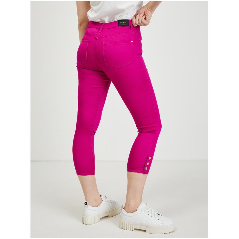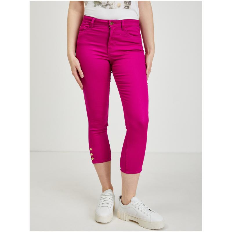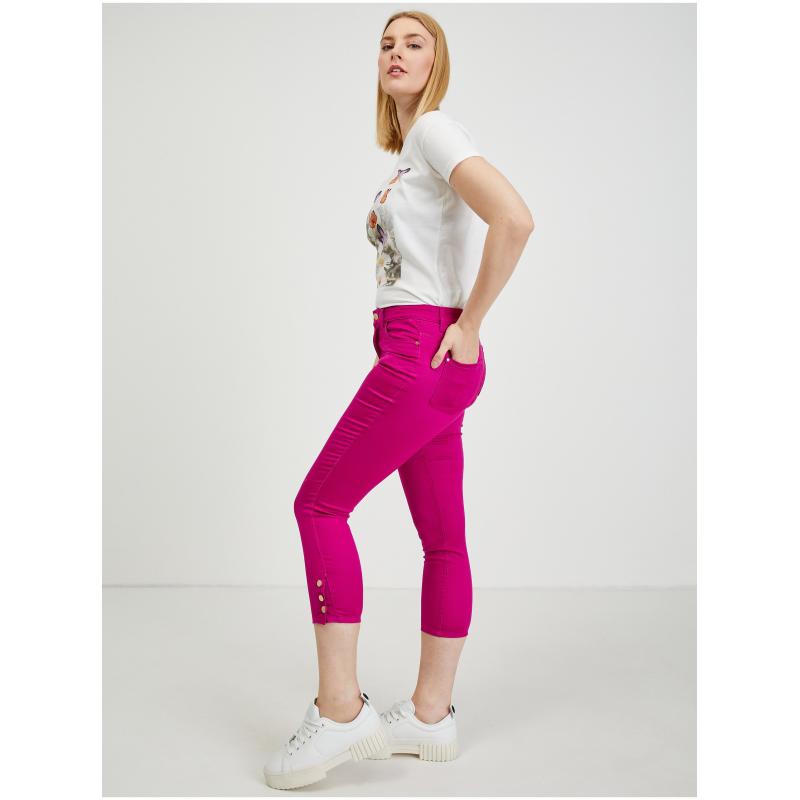 Tmavě růžové dámské zkrácené kalhoty