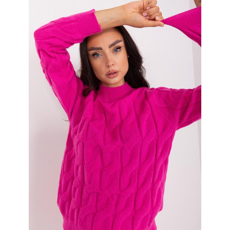 Fuchsiový dámský svetr s knoflíky a copánky