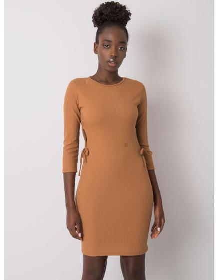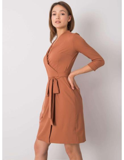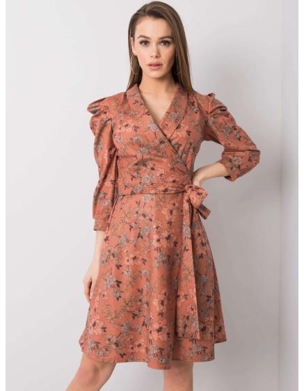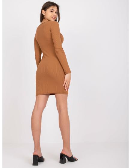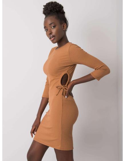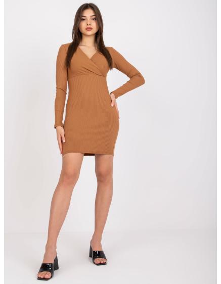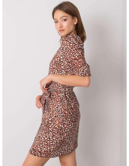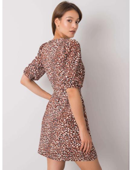 Dámské šaty s volánkovými rukávy koktejlové mini BETTY hnědé
