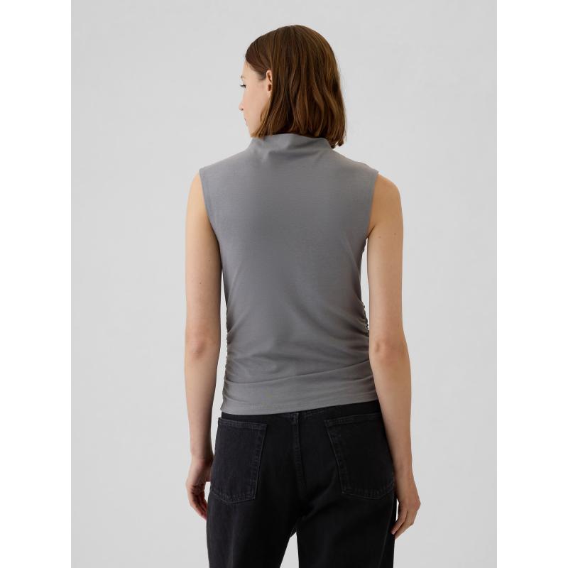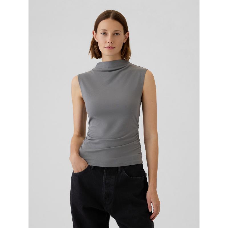 Dámský top bez rukávů. Měkký pružný materiál ze směsi bavlny a modalu. Vysoký límec. Nařasení na bocích. Materiál přizpůsobující se postavě. Základní stylový kousek na každý den. Mírně přiléhavý střih. Délka končící v úrovni boků. Modelky nosící velikost XL od značky Gap měří 172–180 cm a mají pas 86–91 cm a boky 114–127 cm. 53 % bavlna, 35 % modal, 12 % elastan