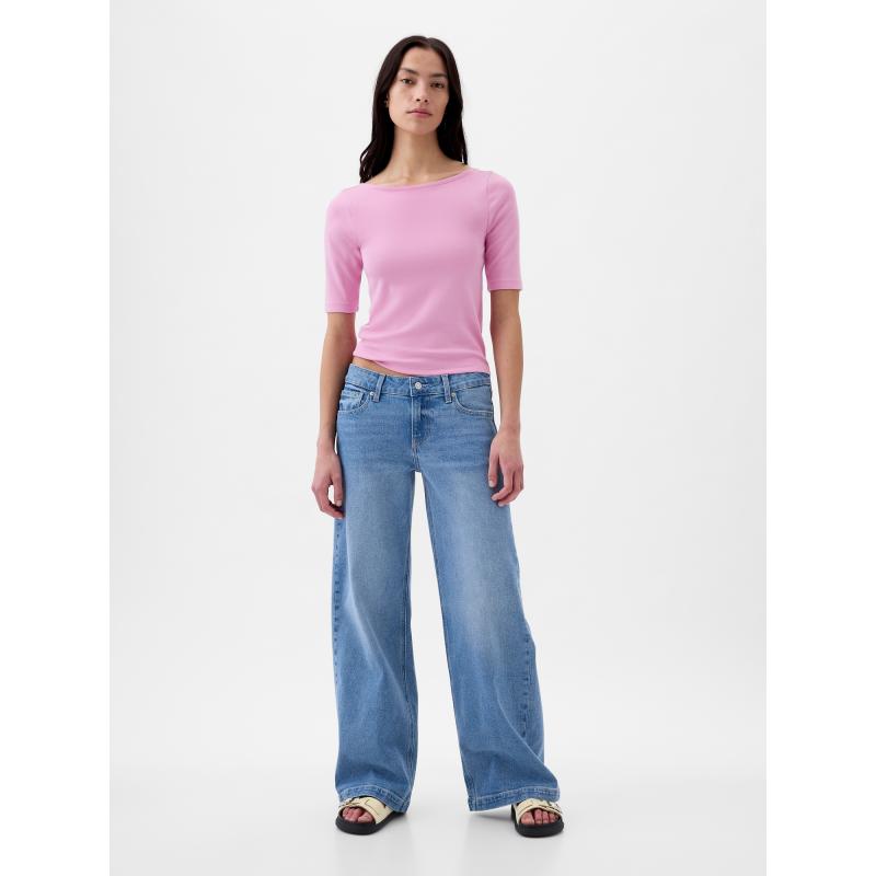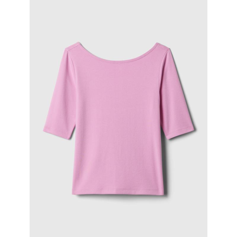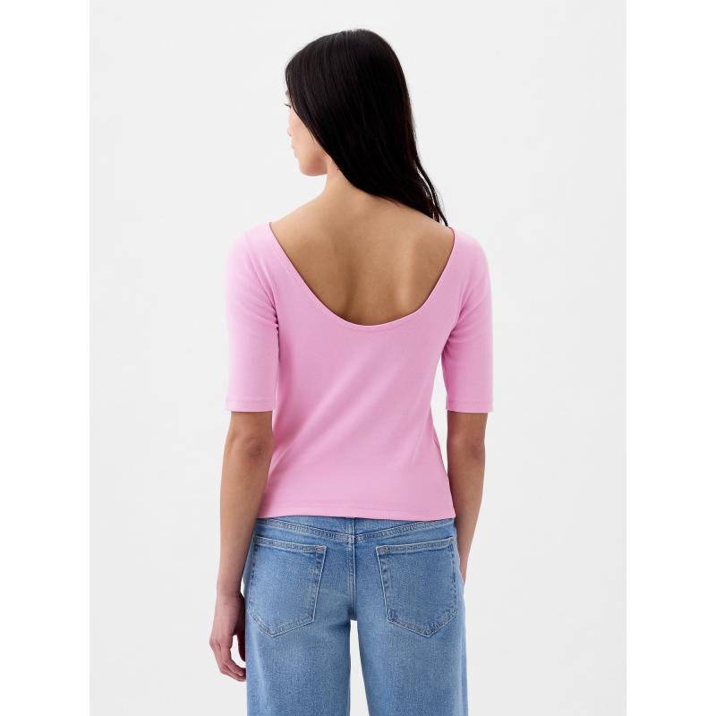 Dámské jednobarevné tričko.Lodičkový výstřih.Hluboký výstřih na zádech.Krátké rukávy.Slim střih a crop délka.Příjemný materiál bavlna a modal. 57 % bavlna, 39 % modal, 4 % elastan