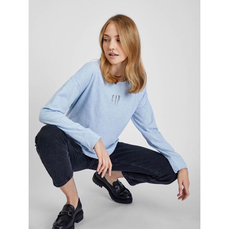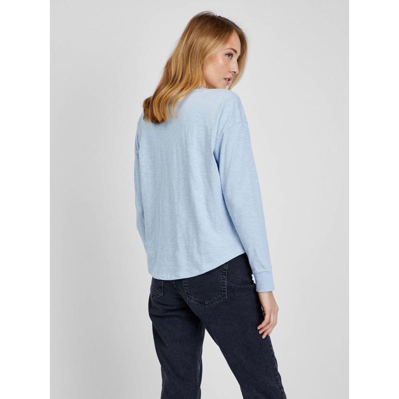 Dámské tričko s drobným logem.Dlouhé spadlé rukávy s nápletem.Kulatý výstřih a zaoblený spodní lem.Široký a kratší střih. 100 % organická bavlna