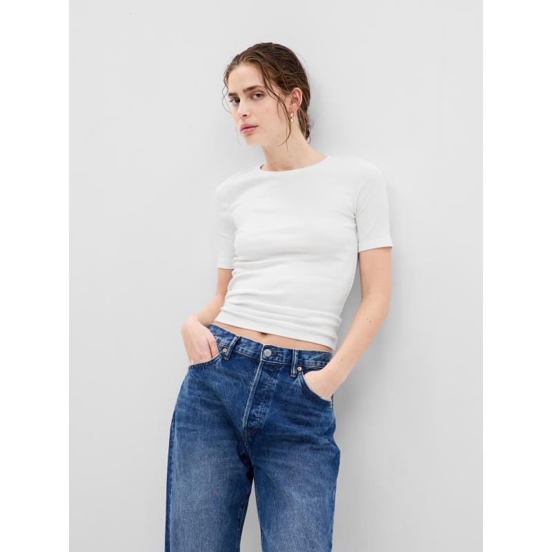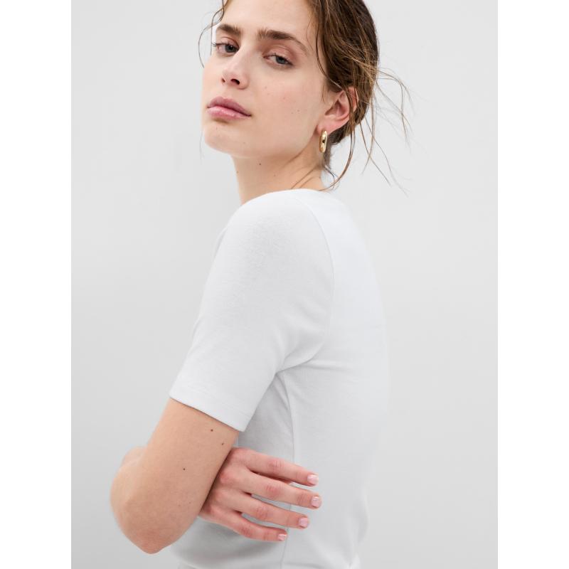 Dámské basic tričko.Krátký rukáv a kulatý výstřih ke krku.Rovný střih a kratší délka.Měkký úplet z bavlny a modalu. 58 % bavlna, 39 % modal, 3 % elastan