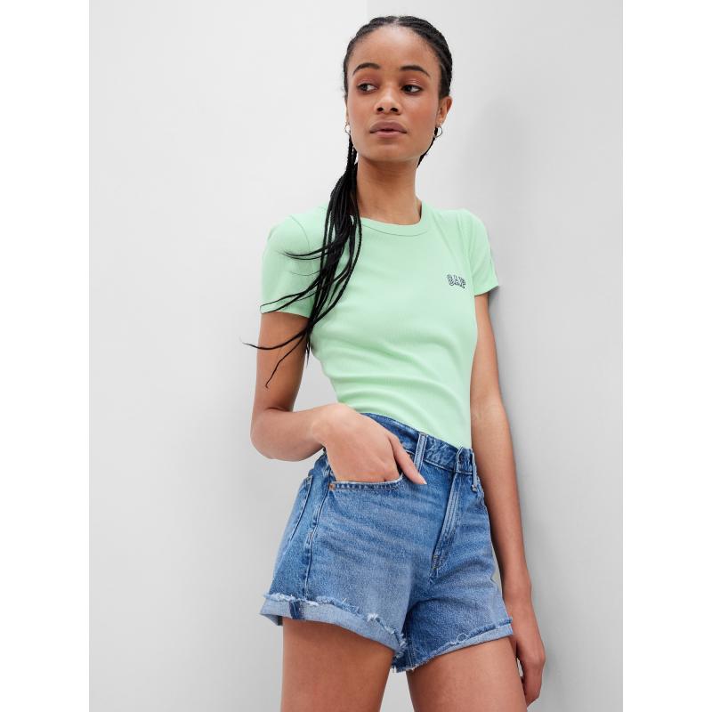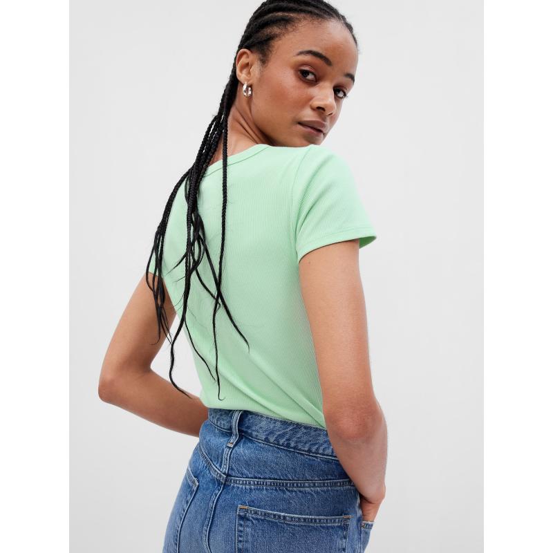 Dámské jednobarevné tričko.Pružný žebrovaný vzor.Vyšité logo Gap.Krátký rukáv a výstřih ke krku.Úzký střih. 94 % bavlna, 6 % elastan