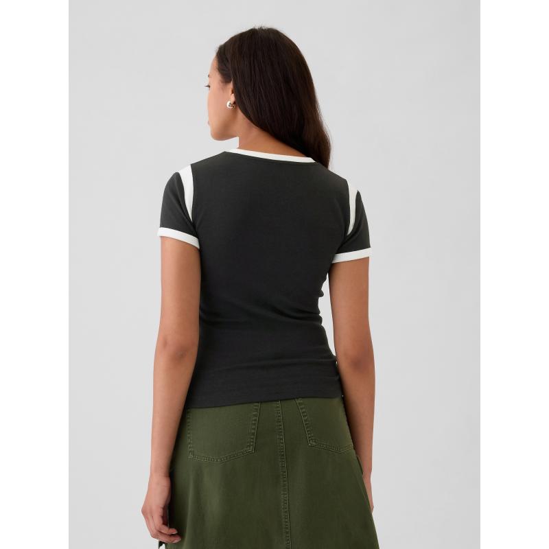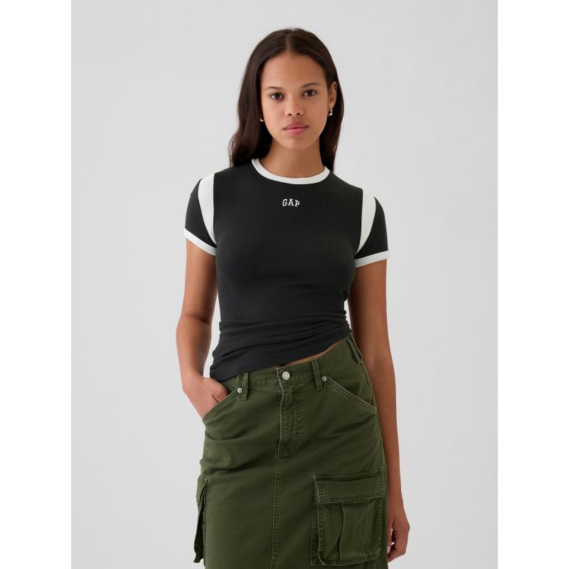 Dámské tričko z bavlněno-modalové směsi.Kulatý výstřih.Krátké rukávy.Malé Gap logo.Přiléhavý střih.Lehce zkrácené, končí nad boky.Výška modelky je 172–180 cm, s pasem 60–66 cm a boky 84–97 cm.Modelka nosí velikost S. 58 % bavlna, 39 % modal, 3 % elastan