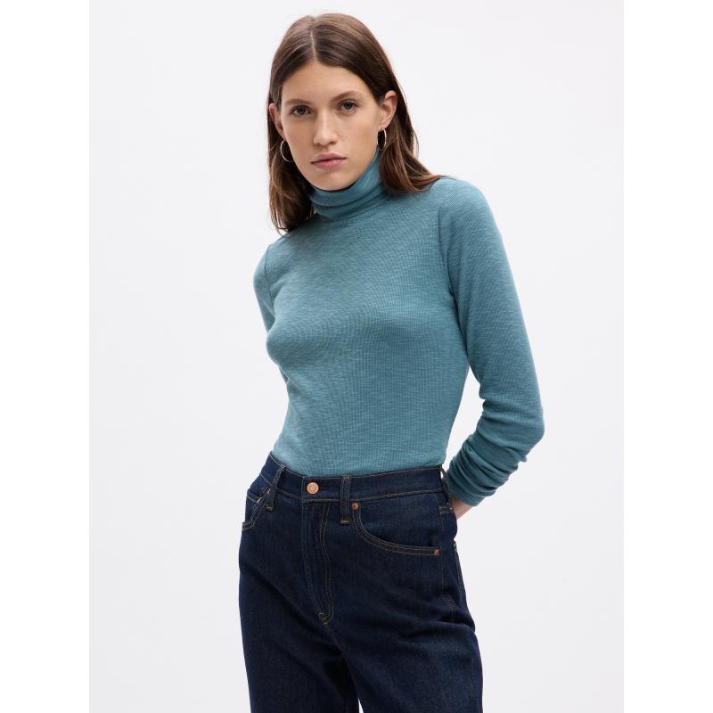 Žebrované tričko.S rolákem u krku.Dlouhé rukávy.Vypasovaný střih. 52 % bavlna, 29 % polyester, 15 % viskóza, 4 % elastan