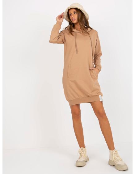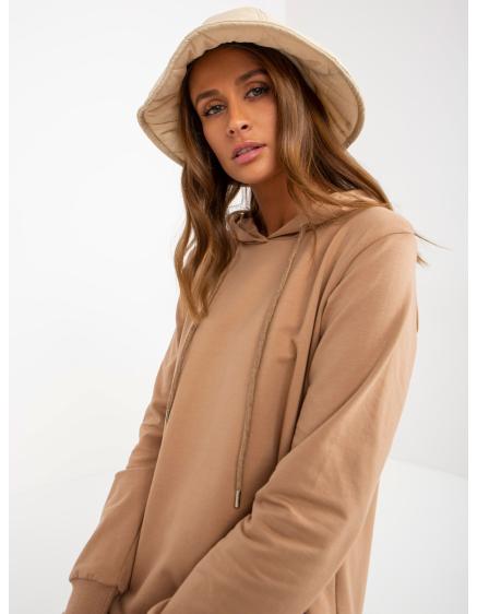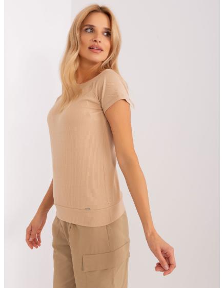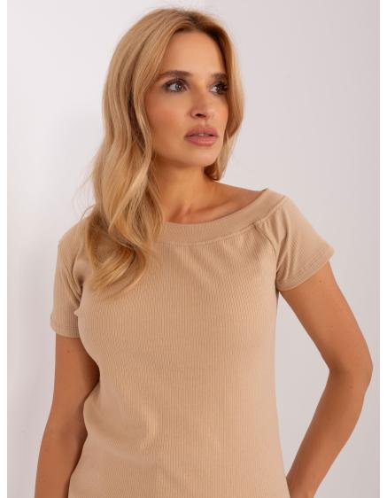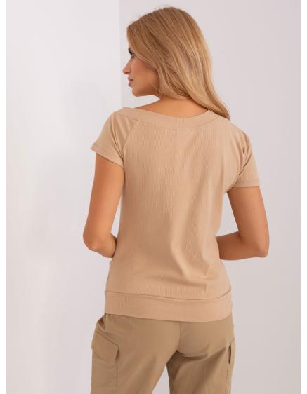 Velbloudí žebrovaná bavlněná halenka s dlouhým rukávem