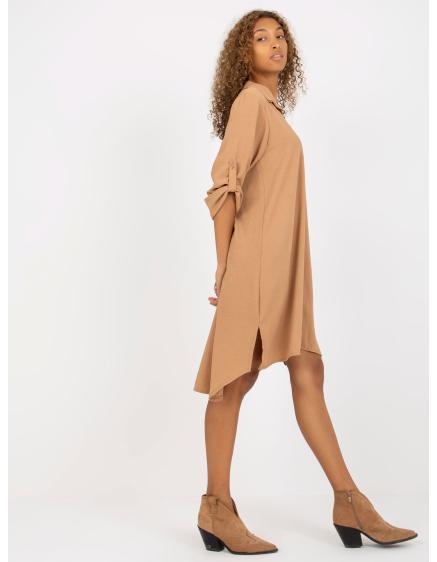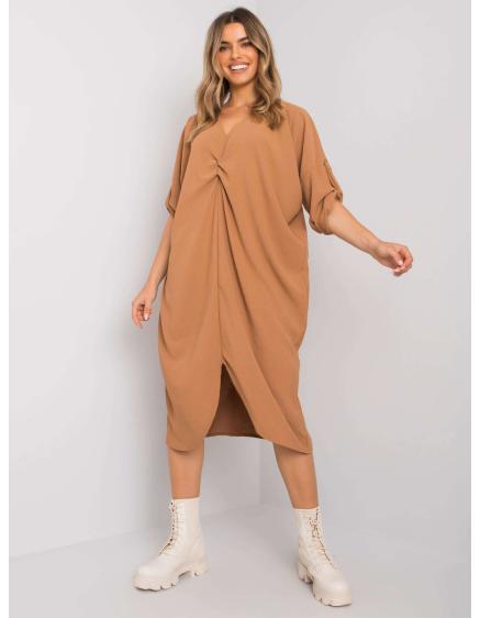 Velbloudí společenské šaty s asymetrickým výstřihem