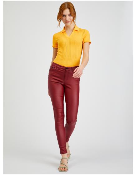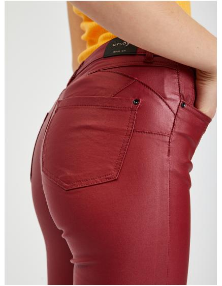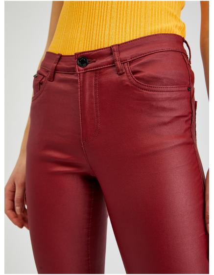 Vínové dámské koženkové kalhoty