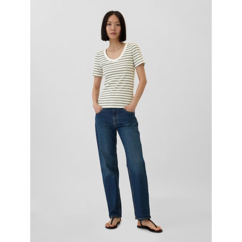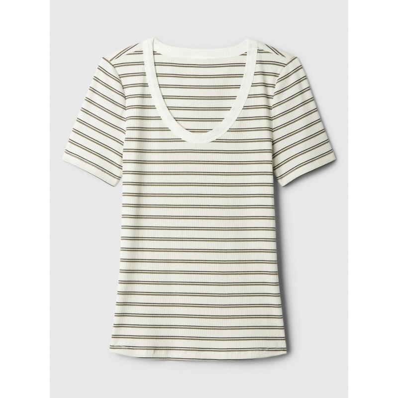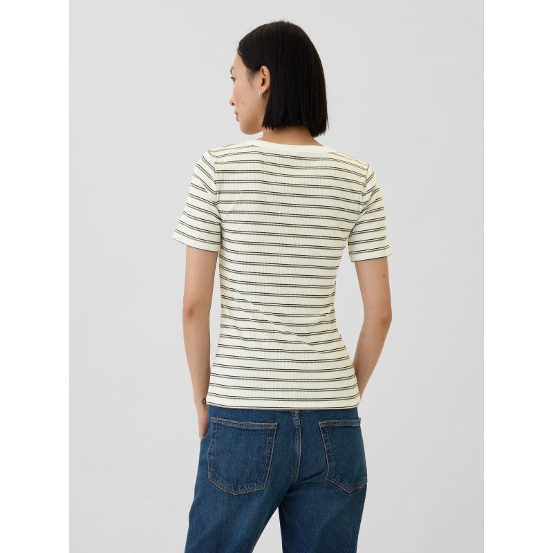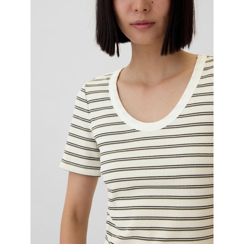 Měkký žebrovaný pletený materiál.Krátké rukávy.Kulatý výstřih.Pruhovaný potisk.Rovný, pohodlný střih.Délka na boky. 57 % bavlna, 38 % polyester, 5 % elastan