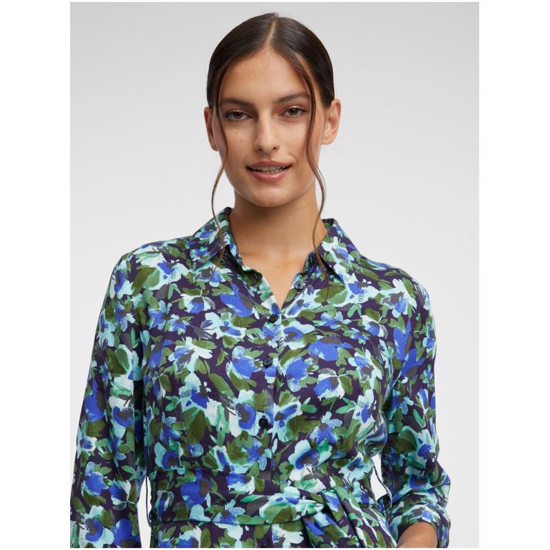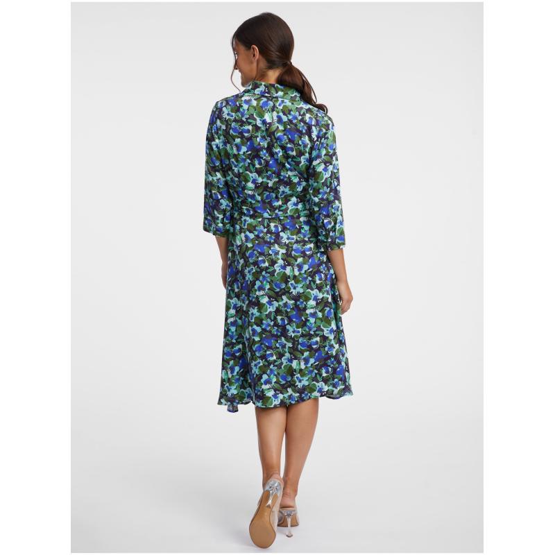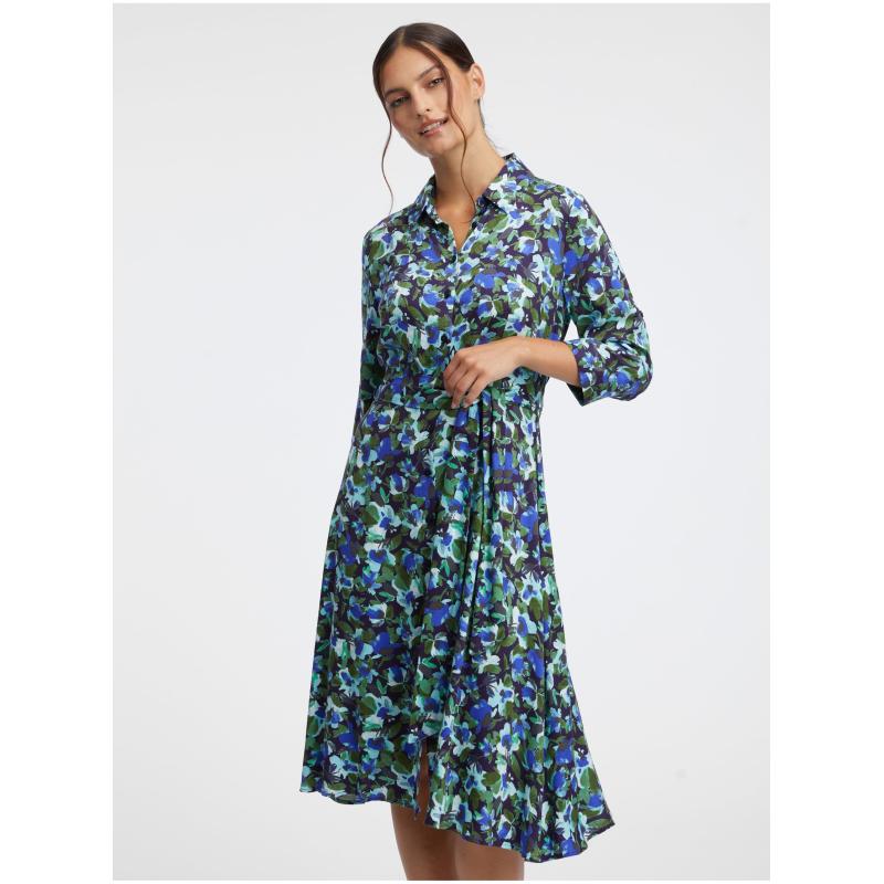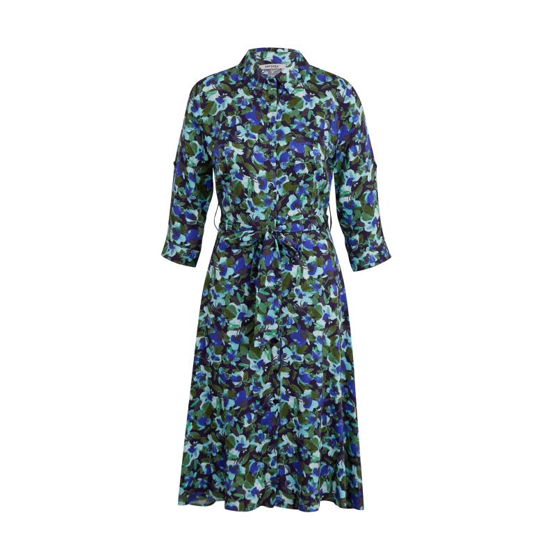 Zeleno-modré dámské květované košilové šaty