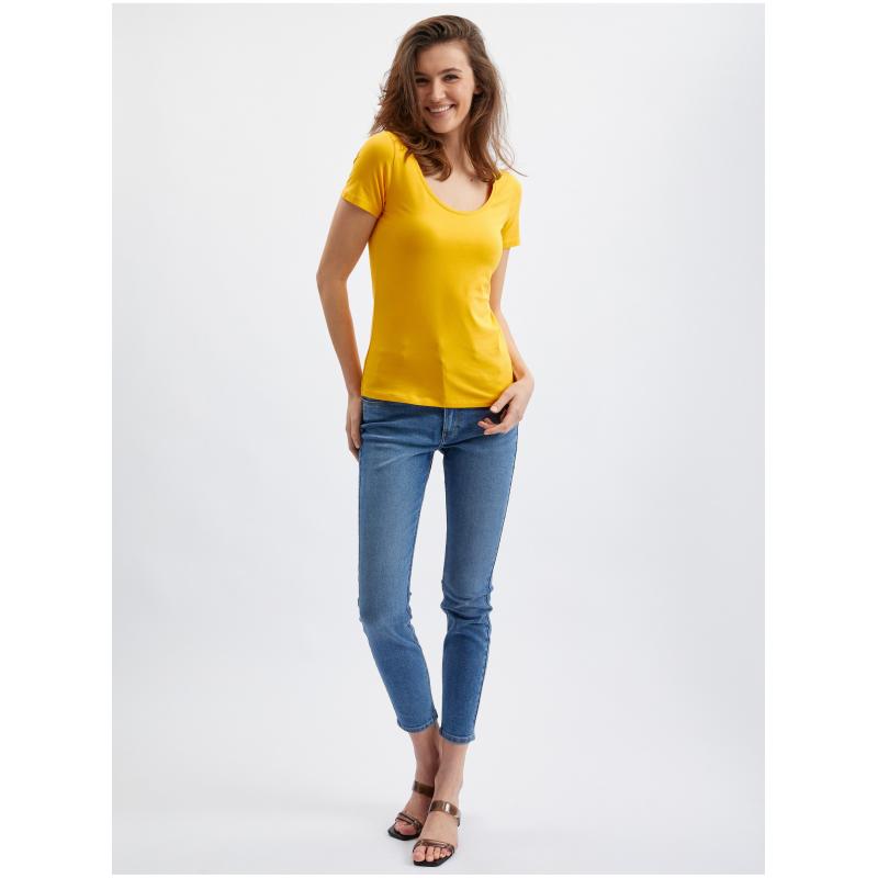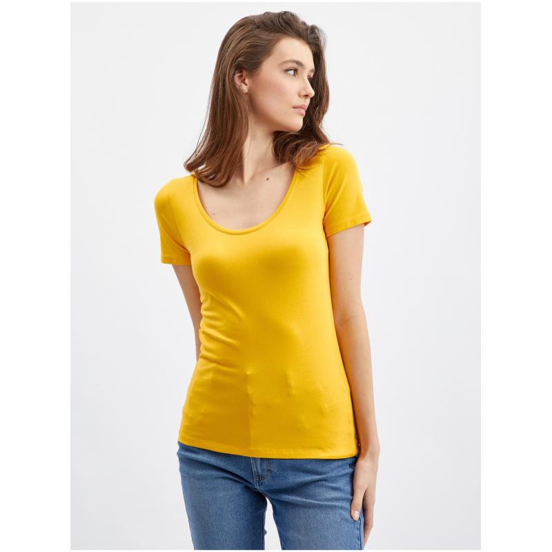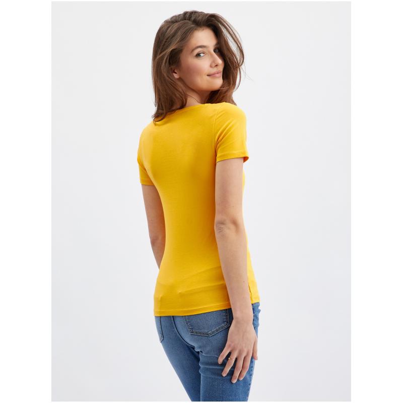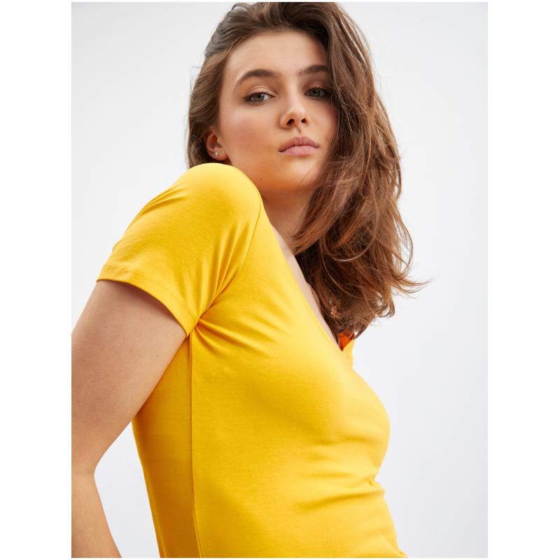 Barva: žlutáStřih: regular fitDélka rukávu: krátkýVýstřih: kulatýMateriál: 95 % bavlna, 5 % elastanKód produktu: 154155217000