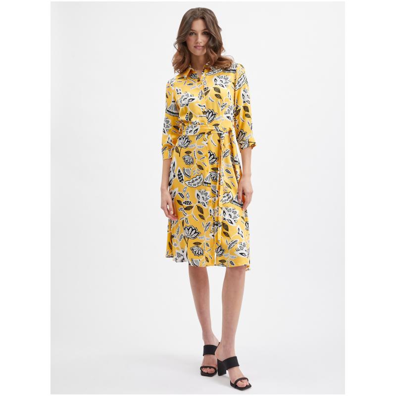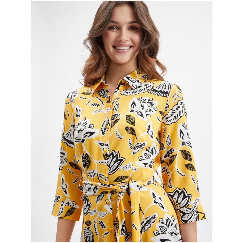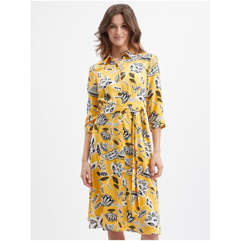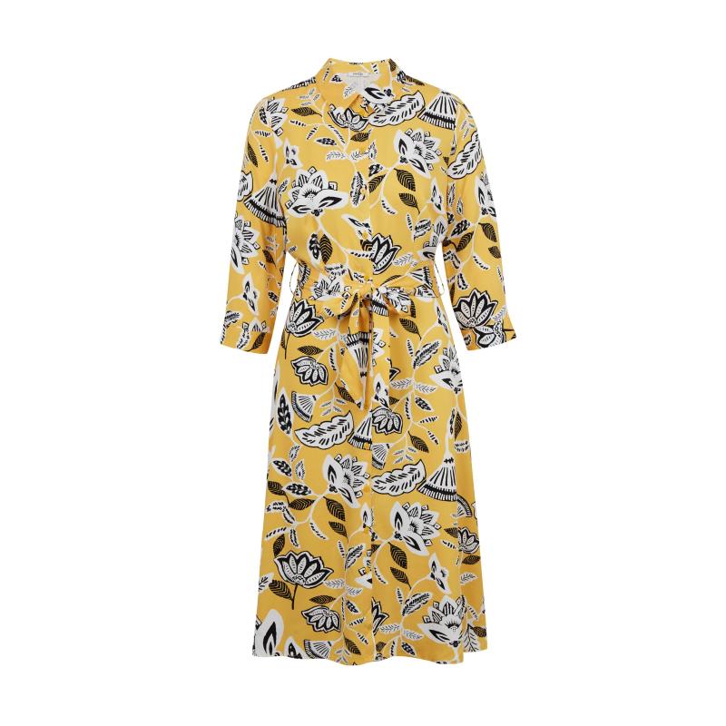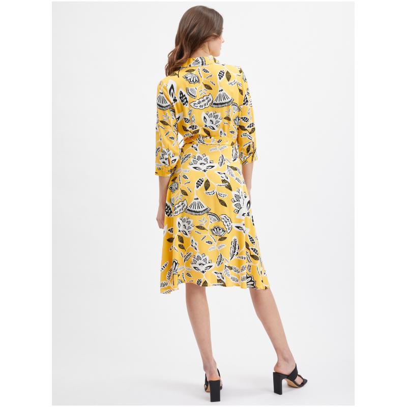 Barva: žlutáStřih: áčkovýDélka: ke kolenůmDélka rukávu: tříčtvrtečníVýstřih: s límečkemVzor: květinovýMateriál: 100 % viskózaKód produktu: 431048217000